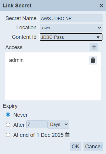 Addto create a new configuration section. Name the section appropriately, for example: AWS-Secret. - Add the following configuration: