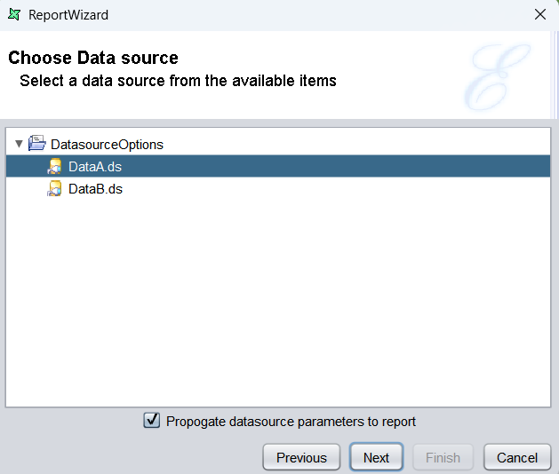 At this point, the report should contain two datasources: DataA.ds and DataB.ds.