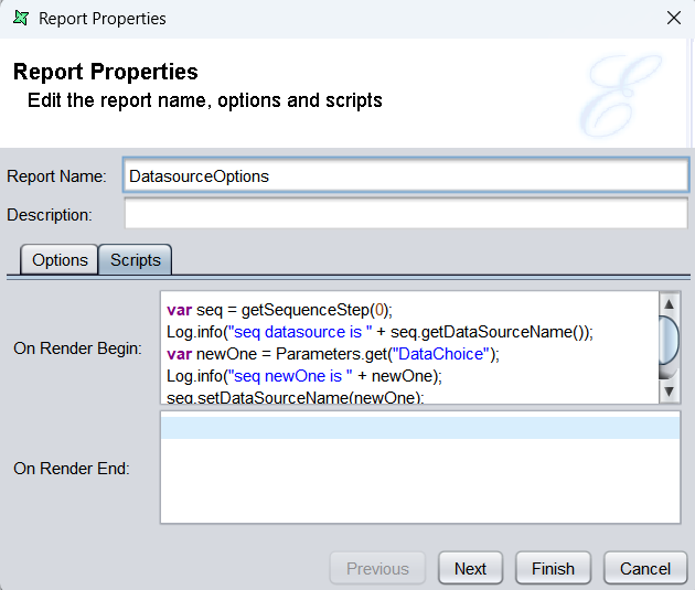 This guide explains how to configure a report template in Ambience Designer 4.x / Repertoire Designer 8.x and Repertoire Designer 202x to dynamically offer multiple datasource options. The report template is fully compatible to be rendered in Ambience 202x and Repertoire 202x. Users will be able to render the report with a selectable datasource option, providing flexibility across both environments.