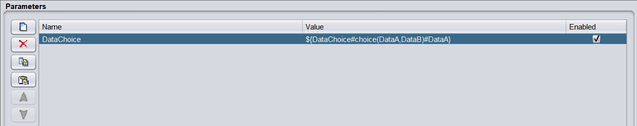 ${DataChoice#choice(DataA,DataB)#DataA}This creates a dropdown with two selectable options (DataA and DataB), with DataA as the default.